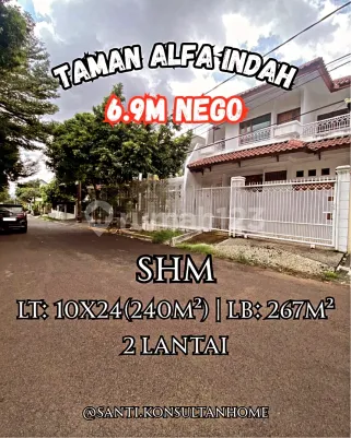 Harga ; 5.5M_Nego Luas Tanah : 11x24 (264m2) Luas Bangunan 256m2 1.5 lantai Kamar Tidur : 8+1 Kamar Mandi : 3+1 SHM Hadap utra Listrik : 13.200 Watt - AC 7 Unit, - Garasi 2 Mobil, - Kitchen Set, - Air Tanah, - Listrik Token Lokasi dekat sekolah & RS baru di Taman Alfa Indah Dekat Tol Jor Lingkungan nyaman & adem. Tidak pernah banjir masuk rumah Survey Hubungi SANTI