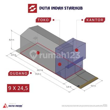 Disewa GUDANG TERMURAH STRATEGIS DI DEKAT BANDARA DUTA INDAH STARHUB Gudang berkonsep 3 in 1 di Duta Indah Starhub terdiri dari gudang, kantor dan workshop di dalam satu atap yang sama. Duta Indah Starhub memiliki izin industri ringan non limbah B3. 2 Lantai Luas Tanah 216-294 Luas Bangunan 216-252 Ukuran : 9x24 10x24 12x18 15x18 12x24 Hadap Utara Hadap Timur Hadap Barat Hadap Selatan FASILITAS GUDANG : ROW Jalan 26 Meter Instalasi Air PAM Instalasi Listrik 3500 watt Instalasi Fiber Wi-Fi One-Gate System Jalan Cor Beton 20 cm Estate Management Professional Keamanan dan CCTV 24 Jam Kantin / Meeting Point Parkir Motor ± 6000 unit Area Parkir Kontainer Ruang Terbuka Hijau Sustainability (Waste, Water, Energy) Lokasi Bandara Soekarno Hatta HARGA SEWA 250JT/TAHUN HANYA YANG SERIUS HUBUNGI ARIF S