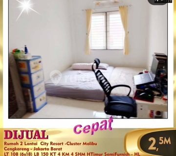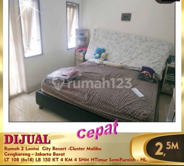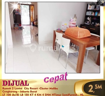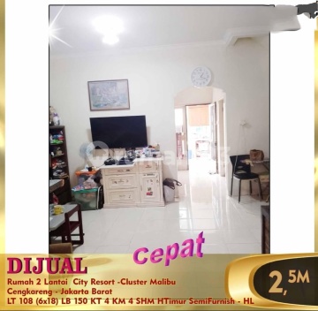 Di jual rumah di City Resort 2 lt luas tanah 108 Luas bangunan 150 Kmr Tidur 4 Kmr Mandi 4 Hadap Timur semi Furnish Ukuran 6 x 18 SHM