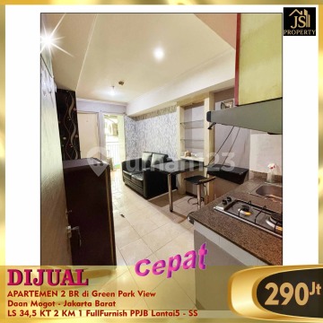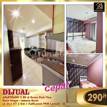 DIJUAL APARTEMEN 2 BR di Green Park View Daan Mogot - Jakarta Barat Sebrang halte Transjakarta Sumur Bor Luas 34,5 m² Lantai 5 View Kolam Renang Kamar Tidur 2 Kamar Mandi 1 Full Furnished PPJB Harga 290Jt Nego
