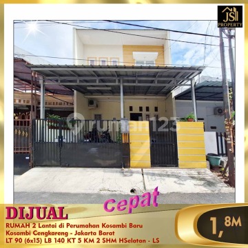DIJUAL CEPAT RUMAH 2 Lantai di Perumahan Kosambi Baru Kosambi Cengkareng - Jakarta Barat Bebas Banjir, Dekat pasar dan gereja. Luas Tanah 90 m² Dimensi 6 x 15 m² Luas Bangunan 140 m² 2 Lantai Kamar Tidur 4 + 1 ART Kamar Mandi 2 Full Furnish : Semi Listrik 2.200 Watt Air Wtp / pam Sertifikat SHM Hadap Selatan Harga 1,8M Nego