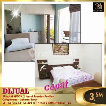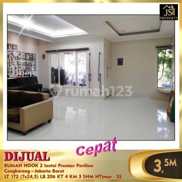 DIJUAL RUMAH HOOK 2 lantai Premier Pavilion Cengkareng - Jakarta Barat 10 menit ke RS Mitra Keluarga 20 menit ke Bandara Soetta 10 menit ke Sekolah Bunda Mulia 15 menit ke pasar swalayan Hari- Hari Luas Tanah 172 m² Dimensi 7 x 24,5 m² Luas Bangunan 206 m² 2 Lantai Kamar Tidur 4 Kamar Mandi 3 Semi Furnish (7 unit AC Panasonic) Listrik 5.500 Watt Air WTP, air tanah Sertifikat SHM Hadap Timur Harga 3,5 M Nego -