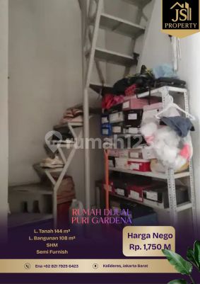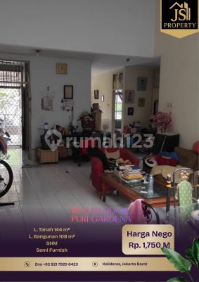 DIJUAL RUMAH PURI GARDENA 1,5 Lantai di Kalideres - Jakarta Barat Luas Tanah 144 m² Dimensi 8x18 m² Luas Bangunan 108 m² 1,5 Lantai Kamar Tidur 3 + 1 ART Kamar Mandi 1 + 1 Semifurnish Listrik 2.200 Watt Air WTP Sertifikat SHM Hadap Tenggara Hal yang Menarik : - Bebas Banjir - Depan Taman - One Gate System Harga 1,750 M Nego