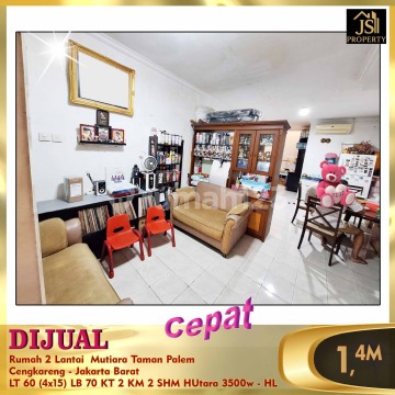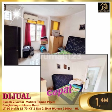 DIJUAL Rumah 2 Lantai Mutiara Taman Palem Cengkareng - Jakarta Barat Luas Tanah 60 M² Luas Bangunan 70 M² Ukuran 4 x 15 2 lantai Kamar Tidur 2 Kamar Mandi 2 Listrik 3,500 kwh Air WTP Hadap Utara Sertifikat SHM Harga 1.4 M Nego - Erna Tjioe 0821xxxxxxxxoc-hl)