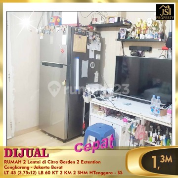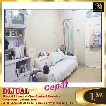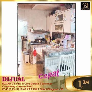 DIJUAL RUMAH 2 Lantai di Citra Garden 2 Extention Cengkareng - Jakarta Barat Bebas Banjir 15 menit Bandara Soetta 5 menit Sekolah Citra Kasih Luas Tanah 45 m² Dimensi 3,75 x 12 m² Luas Bangunan 60 m² 2 Lantai Kamar Tidur 2 Kamar Mandi 2 Semi Furnish Listrik 2.200 Watt Air PAM Sertifikat SHM Hadap Tenggara Harga 1,3 M Nego Erna 0821xxxxxxxxoc-ss)