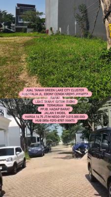 Jual Tanah Green Lake City Cluster Australia Jl. Ebony Cengkareng Jakarta Barat Luas tanah 10x18m (180m) Termurah PPJB, hadap Barat Jalan 3 mobil Harga 16,75 Jt/m nego (Rp 3.015.000.xxx) Hub 0856xxxxxxxxYanti)