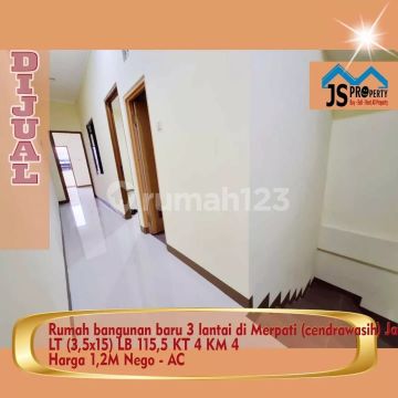 DIJUAL : Rumah Bangunan baru 3 lantai , di Merpati (cendrawasih) Jakarta Barat LT 52,5 M (3,5x15 m) LB 115,5 m Kamar tidur 4 Kamar mandi 4 Hadap utara PLN 2200 watt Harga 1 M