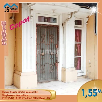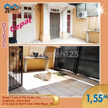 DIJUAL MURAH (HARGA INVESTOR) Rumah 2 Lantai di Citra Garden 2 Ext Cengkareng - Jakarta Barat. Luas Tanah 72 m² Luas Bangunan 105 m² Ukuran Dimensi 6 x 12 M² 2 Lantai KT 3 + 1 KM 2 + 1 Listrik 3500 Watt Air WTP Hadap Barat SHM Rumah Perlu Renovasi Harga 1,45 M (nego) Hub : Fenny 0821xxxxxxxx