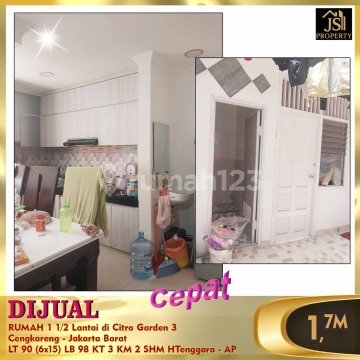 DIJUAL RUMAH 1 1/2 Lantai di Citra Garden 3 Cengkareng - Jakarta Barat Bebas Banjir, Dekat dengan sekolahan,rs Ciputra,kuliner Luas Tanah 90 m² Dimensi 6x15 m² Luas Bangunan 98 m² 1 1/2 Lantai Kamar Tidur 2 + 1 ART Kamar Mandi 2 Listrik 2200 Watt Air WTP Sertifikat SHM Hadap Tenggara Harga 1.7 M Nego Hub : Fenny 0821xxxxxxxx