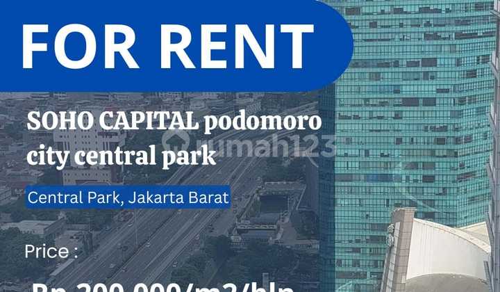 Soho Capital Office Space For Rent Mid Floor with Best City View Office Name: SOHO CAPITAL Podomoro City Central Park Location: Jl. Letjen. S. Parman Kav. 28, Kawasan Podomoro City, Jakarta Barat Floor/View: 20+/City View Size: 138 m² Meeting Room : 1 Directors Room :1 Manager Room : 1 Pantry : 1 Utulity Room : 1 ******** Rent Price : Rp 200.000/m²/month IPL : Rp 62.000/m²/month Minimum Payment 12 months upfront plus 1 month unit deposit HENOVPRO AREBI □ DWI PROPERTI - 0817006xxxx - □ HENRY PROPERTI - 0858xxxxxxxx - •ungownhenproperti This beautiful location occupies the entire 20+th Floor of Soho Capital's Premium Grade-A Office Tower, spread across a floor space of 138 m2. With sweeping views of the city skyline and direct access to West Jakarta's busiest commercial, office, shopping and residential "Central Park Superblock". It offers excellent cost to benefit ratio combined with unsurpassed convenience, which makes this location highly desirable for both local and multinational companies. Facility: Multi Purpose hall, reception, sky garden, tenant direction, playground, sky terrace, food & beverage center, Supermarket, lifestyle Center, parking lot, high speed Internet, ATM, access card, 24 hours security, CCTV. Additional Info: Direct access to Central Park: the busiest commercial, office, shopping and residential superblock in West Jakarta Connected via shopping mall to Pullman Jakarta Central Park 5-Star Hotel Zone controlled high speed elevators with secure access Building secure parking capacity for 6,000 cars Easily accessible via public transport