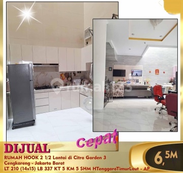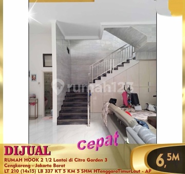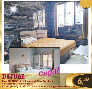 Di jual cepat rumah hook 2,5 lt di Citra Garden 3 cengkareng jakarta Barat, bebas banjir Kmr tidur 4+1 Kmr Mandi 4+1 Listrik 7.700 watt Air Wtp SHM di Hook Hadap Tenggara & Timur laut