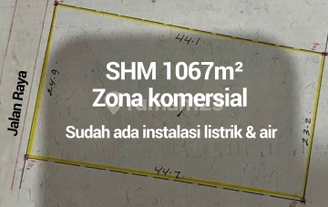 DISEWAKAN KAVLING KOMERSIL Nempel Citra Garden City JakBar ref T173 SHM 1067m² (25x44) Listrik 2200w Air tanah Ruas jalan 3 mobil Dikelilingi fasum sehingga jd perhatian orang yg lewat.