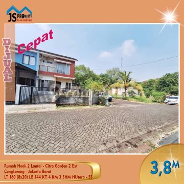 DIJUAL Cepat Rumah Hook 2 Lantai - Citra Garden 2 Ext Cengkareng - Jakarta Barat Luas Tanah 160 m2 Luas Bangunan 144 m2 Dimensi 8x20 2 lantai 3+1 kamar tidur 2+1 kamar mandi Listrik 4.400 kwh Air WTP Hadap Utara Hook SHM Lokasi bagus, jarang ada Harga 3,5M Nego