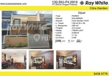 Rumah bergaya minimalis di Citra Garden 2 ext (Wilayah CITRA GARDEN CITY). Cek segera rumah 2 lantai yang asri ini, dijual dengan pemandangan permukiman warga yang menambah nilai estetika di lingkungan hunian. Rumah ini berada di area perumahan/komplek serta menawarkan lingkungan fasilitas yang lengkap, cocok untuk Anda yang menginginkan hunian strategis. Spesifikasi Utama Properti: - Kamar Tidur: 4 - Kamar Mandi: 2 - Tingkat : 2,5 lt - Sertifikat: SHM - Sertifikat Hak Milik - Daya Listrik: 5500 W - Arah Bangunan: Menghadap Timur Laut - Kondisi Perabotan: Unfurnished Dengan harga Rp. 3.100.000.xxx, anda bisa memiliki hunian istimewa yang sudah siap huni dan bersertifikat SHM - Sertifikat Hak Milik. Ambil kesempatan untuk menikmati investasi di kawasan Citra Garden yang nyaman ini! Lokasi di daerah yang dekat dengan: - Sekolah : Dian Harapan, Bunda Mulia, Citra Kasih, Bina Kusumah, Transformation School, Kristoforus, Kairos Gracia, Kemurnian - Rumah sakit : RSUD Kalideres, RS Hermina, RS Mitra Keluarga, RS Ciputra - Super market : Hari-hari, SuperIndo, Lotte Mart - transportasi : Halte Pesakih, stasiun Kalideres, bandara. hub Sukito, WA 081868xxxx atau 0817493xxxx email : ********@********