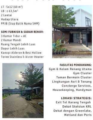 Rekomendasi properti dengan penawaran terbaikRumah123 adalah situs teknologi jual beli dan sewa properti terdepan di Indonesia, yang hadir sejak tahun 2007 dan telah melayani jutaan orang di Indonesia. Rumah123 senantiasa berkomitmen untuk membuat pengalaman 'Jual Beli dan Sewa Properti Lebih Mudah' dengan dukungan dari developer terkemuka serta agen profesional.