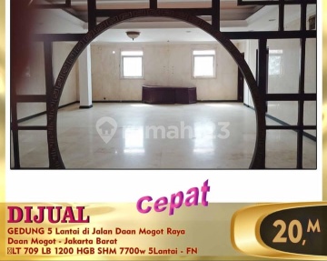 Di jual gedung 5 lt di pinggir jln raya di Daan Mogot Raya Lokasi bagus di pinggir jalan raya Daan Mogot kurleb 400 m dari keluaran tol jorr kurleb 20 menit kebandara international Soekarno Hatta Lahan parkir muat 14 mobil cocok untuk segala jenis usaha Sertifikat ada 2 SHM dan HGB Listrik 7700 PAM