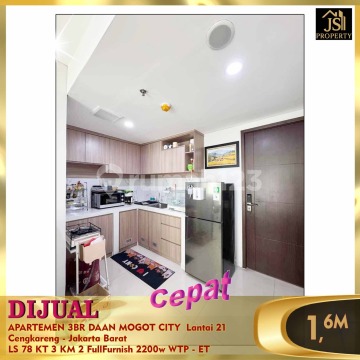 DIJUAL APARTEMEN 3BR DAAN MOGOT CITY Lantai 21 Cengkareng - Jakarta Barat * Bebas Banjir * Dekat Halte TJ * Depan Jalan Daan Mogot Luas Bangunan 78 m² Tower Albatros Kamar Tidur 3 Kamar Mandi 2 Full Furnish Listrik 2200 Watt Air WTP Sertifikat SHMRS View Swimming Pool Harga 1,6 M Nego