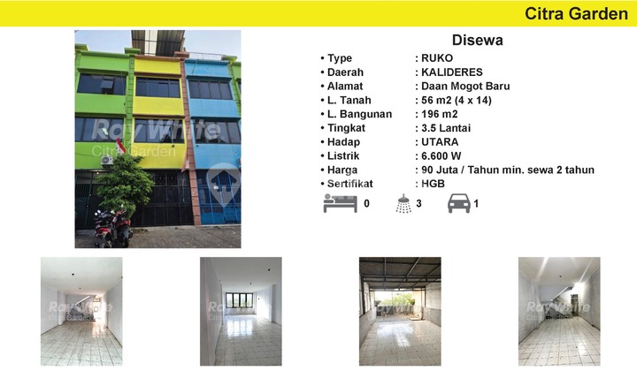 Ruko di Daan Mogot. Dapatkan ruko yang modern ini, disewakan menghadirkan lingkungan fasilitas yang lengkap, cocok untuk Anda yang menginginkan hunian strategis. Spesifikasi Utama Properti: - Kamar Mandi: 3 - Sertifikat: HGB - Hak Guna Bangunan - Daya Listrik: 6600 W - Kondisi Perabotan: Semi Furnished Dilengkapi dengan: - Jalur Telepon. Fitur unggulan: - Siap Huni. - Bebas Banjir. - Dekat Akses Pelabuhan. - Dekat Akses KRL. - Dekat Akses Transjakarta. - Dekat Akses Bus Kota. - Dekat Akses Bandara. - Dekat Pusat Perbelanjaan. - Dekat Sekolah Internasional. - Dekat Sekolah Negeri. - Dekat Universitas. - Dekat Fasilitas Kesehatan. - Dekat Tempat Wisata. - Dekat Taman Kota. - Dekat Landmark. - Dekat Akses Tol. - Dekat Pusat Bisnis. - Dekat Kawasan Industi. - City View. - Sejuk. - Lokasi Strategis. - Lokasi Bebas Banjir. Terletak di Daan Mogot, ruko ini memberikan kemudahan akses ke berbagai fasilitas menarik. Dengan harga Rp. 7.500.000, anda bisa memiliki hunian premium yang sudah siap huni dan bersertifikat HGB - Hak Guna Bangunan. Manfaatkan kesempatan untuk menikmati investasi di kawasan Daan Mogot yang nyaman ini! Kontak segera untuk informasi lebih lanjut!