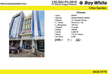 Ruko di lokasi strategis di Daan Mogot Baru, Jakarta Barat. For rent di wilayah yang tenang. Dengan kategorinya adalah sebagai berikut: - Kamar Mandi: 3 - Sertifikat: SHM - Sertifikat Hak Milik - Daya Listrik: 4400 W - Kondisi Perabotan: Unfurnished Dan properti ini juga pilihan tepat karena: - Dekat Akses Transjakarta - halte Besakih , jl Daan Mogot raya - Dekat Akses Bus Kota. - Dekat Akses Bandara. - Dekat Pusat Perbelanjaan Daan Mogot Mall - Dekat Sekolah Dian Harapan, Bunda Mulia - Dekat rumah sakit : RSUD Cengkareng, RS Hermina hub : Sukito : 0818688{011}, 0817493 {0000} Email: Sukito. wongso @ citragarden.{com}