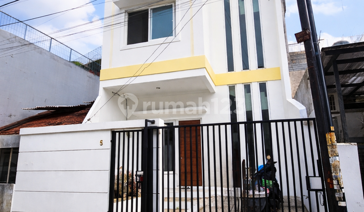L.Tanah : 6x15=90m2 L.Bangunan : 200m2 K.tidur : 5+1 K.mandi : 4 Lantai : 3 hadap selatan Surat : SHM lebar jalan 2mobil listrik 2200 Harga : 2.5m