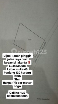 Luas 5000m Lebar muka 40 Panjang 120 kurang lebih Shm atas nama perorangan Harga 17jt per meter nego