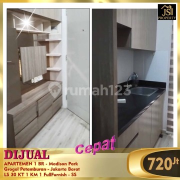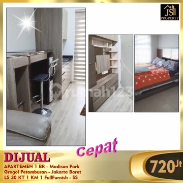 DIJUAL CEPAT APARTEMEN 1 BR - Madison Park Grogol Petamburan - Jakarta Barat Bebas Banjir, Dekat Central Park, Dekat Tanjung Duren Luas Bangunan 30 m² Kamar Tidur 1 Kamar Mandi 1 Full Furnish Sertifikat PPJB View jogging track hotel Pullman Central Park Harga 720 Jt Nego Info & survey, hub : Fenny 08212553xxxx