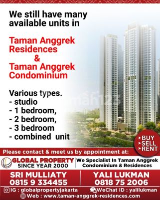 Sale Central Park Residences Strategic location, flood free Best Apartment For: - Young Married Couple - Small Family - Young Executive and businessman who need exclusive and cozy residence with easy access to anywhere. Specification: Size : 80 sqm Bedroom : 2 Bedroom Rent Price : Rp. 2.5 Millyar Condition : Fully Furnished For further information, please contact us: - Yali Lukman : wa.me/6281875xxxx o IG : ******** o E-mail: globalproperty89@******** CBD Area in Central Park: - Residential - Ruko - Office Tower APL - Mall - SOHO Facility: - Swimming Pool - Children's Pool - Kids Playground - Jogging Track - Grocery Store - Mini Supermarket - Tennis Court - Basketball Court - Function Hall - Fitness Center (Gym) - Jacuzzi - Spacious Parking Spaces - Receptionist - Security 24 Hours - Laundry - ATM Access: - Direct access to APL Tower and Central Park Mall From main lobby. - Only walking to Taman Anggrek Mall, Neo SOHO - Next to Pullman Hotel - TransJakarta bus stop in front of APL Tower. Very close to Jakarta Inner Ring Road, S. Parman and Gatot Subroto mainroad, - Easy access to all amenities - Near Royal Taruma hospital - Food & Restaurants Nearby - Near Tanjung Duren culinary center - Near Many universities (Ukrida, Untar, Binus, Trisakti.
