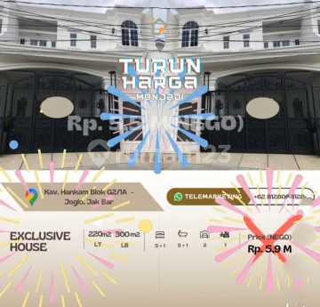 *HOT LISTING* Dijual rumah mewah kavling Hankam joglo jakbar, 2 LANTAI Seberang mesjid LT 220 LB 300 KT 5+1 KM 5+1 CARPORT 2MOBIL SHM 7700 AREA SERVIS Bonus tergantung Final Nego WATER HEATER 130L TENAGA SURYA, HYBRID POMPA SATELIT KOMPOR TANAM KITCHEN SET AC TIAP KT KECUALI KT ART PONDASI BETON BERTULANG DAN BATU KALI KERAMIK LANTAI UTAMA+ KM EX ROMAN DINDING BATA MERAH KERANGKA ATAP BAJA RINGAN PENUTUP GENTENG KERAMIK EX KANMURI ROMAN CLOSET TOTO WASTAFEL AMERIKAN STANDARD+TOTO CAT BY DULU ICI SAKLAR & STOP KONTAK BROCO KABEL LISTRIK SUPREME/KABELINDO HRG 5,5M NEGO