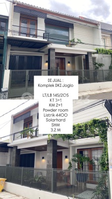 ✨ DIJUAL RUMAH SIAP HUNI - KOMPLEK DKI JOGLO ✨ Luas Tanah / Bangunan ▫️ LT 145 m² ▫️ LB 205 m² Kamar Tidur ▫️ 3 + 1 KT Kamar Mandi ▫️ 2 + 1 KM ▫️ Powder Room :zap: Listrik ▫️ 4.400 Watt :fire: Fasilitas Tambahan ▫️ Solar Water Heater Legalitas ▫️ SHM (Sertifikat Hak Milik) Harga ▫️ Rp 3,2 M Riani ERA Fiesta Metland