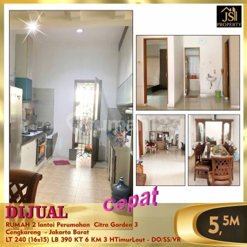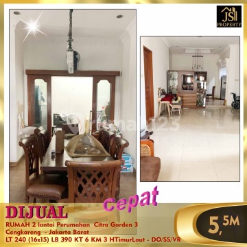 DIJUAL Siap huni & terawat RUMAH 2 lantai Perumahan Citra Garden 3 Cengkareng - Jakarta Barat Bebas Banjir, Rumah siap huni Dirawat dengan baik Kamar tidur lantai 1 ada kamar mandi Luas Tanah 240 m² Dimensi 16 x 15 m Luas Bangunan.390. m² 2 Lantai Kamar Tidur 5 + 1 ART Kamar Mandi 2 + 1 Semi Furnish Listrik 3.500 Watt Air WTP Sertifikat SHM Hadap Timur Laut Harga 5,5 M Nego - DO/SS/VR