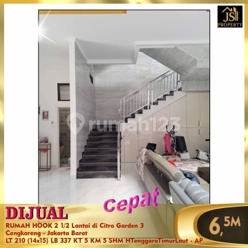 DIJUAL CEPAT RUMAH HOOK 2 1/2 Lantai di Citra Garden 3 Cengkareng - Jakarta Barat Bebas Banjir 20 menit ke Bandara Soetta 10 menit ke RS Ciputra 10 menit ke Sekolah Citra Kasih Luas Tanah 210 m² Dimensi 14 x 15 m² Luas Bangunan 337 m² 2½ Lantai Kamar Tidur 4 + 1 Kamar Mandi 4 +1 Listrik 7.700Watt Air WTP Sertifikat SHM Hook Hadap Tenggara& Timur laut Harga 6,5M Nego - AP