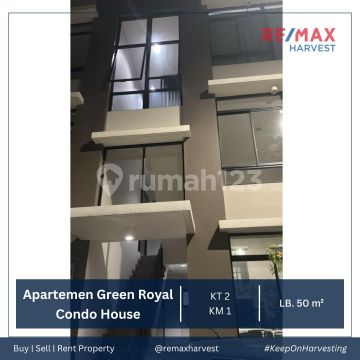 DIJUAP CEPAT !! APARTEMEN GREEN ROYAL CONDO HOUSE Jakarta Barat Tower GR 3 LB : 50 M² Lantai Rendah KT : 2 KM : 1 PPJB Semi Furnished : - 3 Unit AC - Gorden - Mesin Cuci - Kitchen Set Ada Ruang Cuci dan Jemur Lokasi Strategis Direct Owner (KN) Harga Jual : 670 Juta
