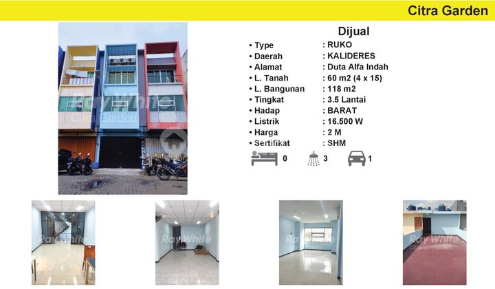 Ruko di Kalideres, Jakarta Barat. For sale di wilayah yang asri. Dengan kategorinya adalah sebagai berikut: - Kamar Mandi: 3 - Sertifikat: SHM - Sertifikat Hak Milik - Daya Listrik: 16500 W - Kondisi Perabotan: Unfurnished Telah lengkap dengan fasilitas: - Jalur Telepon. Dan properti ini juga pilihan tepat karena: - Bisa KPR. - Siap Huni. - Bebas Banjir. - Dekat Akses Pelabuhan. - Dekat Akses KRL. - Dekat Akses Transjakarta. - Dekat Akses Bus Kota. - Dekat Akses Bandara. - Dekat Sekolah Internasional. - Dekat Sekolah Negeri. - Dekat Universitas. - Dekat Fasilitas Kesehatan. - Dekat Tempat Wisata. - Dekat Taman Kota. - Dekat Akses Tol. - Dekat Landmark. - Dekat Kawasan Bisnis & Industri. - Lokasi di Pusat Kota. - Pemandangan City View. - Adem & Sejuk. - Cocok Untuk Investasi. - Cocok Untuk Dijual Kembali. - Akses Jalan Muat 2 Mobil. - Properti Bisa Nego. - Lokasi Strategis. - Lokasi Bebas Banjir. - One Gate System. - Properti Eksklusif. Lokasi ruko ini terjangkau, hanya selangkah menuju berbagai fasilitas utama dan menarik. Hanya Rp. 2.000.000.xxx, anda dapat langsung dapatkan ruko premium di daerah Kalideres ini.