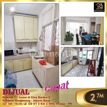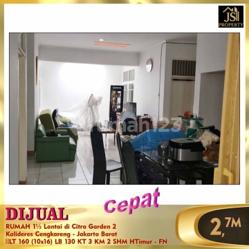 DIJUAL RUMAH 1½ Lantai di Citra Garden 2 Kalideres Cengkareng - Jakarta Barat Luas Tanah 160 m² Ukuran Dimensi 10 x 16 m² Luas Bangunan 130 m² 1½ Lantai Kamar Tidur 3 Kamar Mandi 2 Listrik 2200 Watt Air WTP SHM Hadap Timur Row Jalan 2 Mobil Harga 2,7M Nego info & survey , hub : Fenny 0821xxxxxxxx