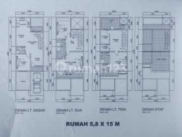 Harga Rp.2,5 M Ukuran5,8x15 m 3 Lantai Kamar Tidur 5 Kamar Mandi 5 Sertifikat SHGB Hadap Tenggara Fasilitas 1 Gudang dan Jemuran.