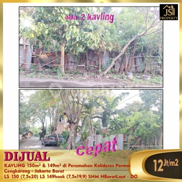 DIJUAL : 2 unit KAVLING 150m² & 149m² di Perumahan Kalideres Permai - Jakarta Barat Bebas Banjir, Dekat dengan terminal kalideres, jl. Raya Daan Mogot LS 150 (7,5x20) LS 149 (7,5x19,9) Hook Sertifikat SHM Hadap Barat Laut - Utara Harga 12Jt/m² Nego