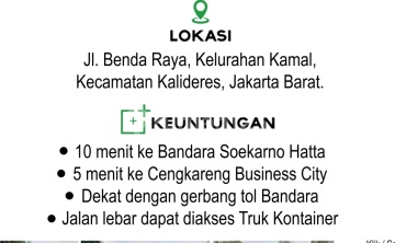 * DIJUAL TANAH STRATEGIS KAMAL - JALAN BENDA, Kalideres DEKAT BANDARA SOETTA! * Cocok untuk investasi, gudang, logistik, hotel, atau pengembangan komersial! Spesifikasi Properti Luas Tanah (LT) : 4.568 m² Status Sertifikat : SHGB Harga : Rp 15.000.000 / m² Harga Total : Rp 68.520.000.xxx Lokasi Premium & Strategis ±15 menit ke Bandara Internasional Soekarno-Hatta ✈️ Dekat Cengkareng Business City (CBC) Akses mudah ke Jalan Raya Perancis & kawasan pergudangan Lingkungan berkembang pesat - pusat bisnis & logistik Akses Transportasi Dekat akses Tol Bandara Mudah menuju Tol JORR & Tol Dalam Kota Jalur utama distribusi & kendaraan besar Akses kontainer & kendaraan logistik sangat mendukung Fasilitas Umum Sekitar Kawasan perkantoran & pergudangan Hotel & penginapan sekitar bandara SPBU, restoran, minimarket Area komersial & pusat bisnis Selling Point Utama ✅ Lokasi emas dekat Bandara Soetta ✅ Cocok untuk gudang, logistik, cargo, atau komersial ✅ Area berkembang dengan potensi kenaikan nilai tinggi ✅ Akses jalan besar & strategis ✅ Luas tanah besar - fleksibel untuk berbagai kebutuhan usaha :fire: Tanah jarang tersedia di area ini dengan harga kompetitif! Sangat cocok untuk investor & developer yang ingin ekspansi bisnis di kawasan bandara.