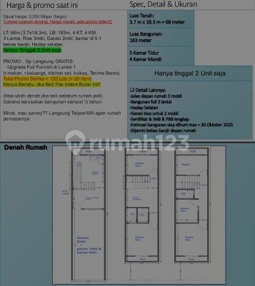 Rekomendasi properti dengan penawaran terbaikRumah123 adalah situs teknologi jual beli dan sewa properti terdepan di Indonesia, yang hadir sejak tahun 2007 dan telah melayani jutaan orang di Indonesia. Rumah123 senantiasa berkomitmen untuk membuat pengalaman 'Jual Beli dan Sewa Properti Lebih Mudah' dengan dukungan dari developer terkemuka serta agen profesional.