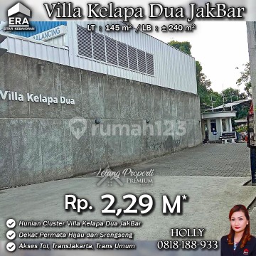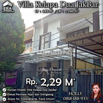 INFO UPDATE LISTING RUMAH SIMPLE MINIMALIS CLUSTER PERUM VILLA KELAPA DUA KEBON JERUK JAKBAR Alamat: Perum Villa Kelapa Dua Jl. Janur Kel. Kelapa Dua Kec. Kebon Jeruk Jakarta Barat Detail Properti: - Luas Tanah : 145 m² - Luas Bangunan : ± 240 m² Keunggulan Lokasi: - Lokasi Tenang, Nyaman dan Premium Harga: Rp. 2,29 M ( CASH ONLY) Harga SUDAH Termasuk biaya Pengosongan dan Balik Nama. (Harga di atas belum termasuk BPHTB 5%, biaya lelang 2%, Pajak Pemerintah 1%, dan PBB jika ada) **Kenapa Memilih Kami?** Dengan pengalaman 12 tahun di bidang lelang, kami menyediakan solusi satu atap untuk semua proses transaksi. Kami akan membantu anda mulai dari proses balik nama, penguasaan aset sampai proses serah terima kunci dengan aman, nyaman dan bebas ribet. Hubungi Kami untuk Info Lebih Lanjut: - Holly: 081818xxxx - Ferry: 0816116xxxxLelangProperti #PropertiIndonesia #InvestasiProperti #PropertyInvestment #RumahDijual #AgentProperti #JakartaRealEstate #JualBeliProperti #EraIndonesia #AgenPropertiTerpercaya #Investasi #RealEstateAuction #RumahdijualJakartaBarat #RumahAsri #Rumahmewah #Rumahmodern #Rumahminimalis #KebonJeruk #VillaKelapaDua #JakartaBarat #KelapaDua