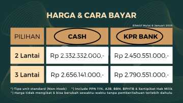 [ FOR SALE ] New Townhouse Cluster Di Atas Lahan 6000 m² Total Tersedia 49 Unit Di KEMBANGAN - JAKARTA BARAT Tersedia 2 Tipe • Tipe 2 Lantai • Luas Tanah : 6x10 m² • Luas Bangunan : 110 m² • K Tidur 3 + K Mandi 3 • 2 Living Room, Atap Dak Beton ▪️Harga Rp 2,33 Milyar • Tipe 3 Lantai : • Luas Tanah : 6x10 m² • Luas Bangunan : 140 m² • K Tidur : 4 + K Mandi : 3 • Living Room, Rooftop Terrace ▪️Harga Rp 2,6 Milyaran