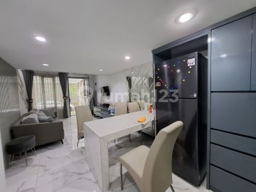 Lt 4.2x12 2 lt, ada mezanin Kt 2 Km 2 Shm 4400 watt Gudang Full furnish : 3 ac, sofa, meja makan, kitchen set, kompor, cooker hood, kulkas 2 pintu, mesin cuci dan pengeringnya, 2 filter air, dispenser, meja kerja, gorden, ranjang, lemari pakaian, tempat sepatu, lemari TV Harga 1.7m nepis Regency Hijau Kembangan Joglo