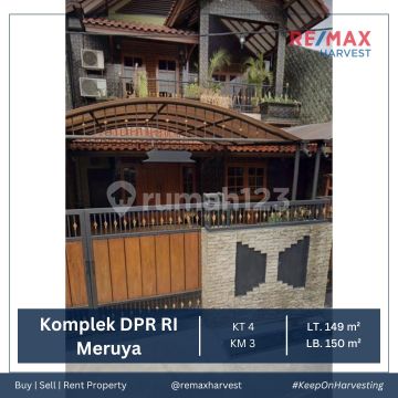 DIJUAL/DISEWA CEPAT !! RUMAH SIAP HUNI Komplek DPR RI - Meruya LT : 10 × 14.9 (149 M²) LB : 150 M² Bangunan 2.5 Lantai Unfurnished SHM KT : 4 KM : 3 Air Jetpump Hadap Timur Listrik 5500 Watt Carport 2 Mobil Lebar Jalan 2 Mobil Lokasi Strategis (GB.C.SL) Harga Jual : 3.8 Miliar Harga Sewa : 65 Juta/Tahun Minimal Sewa 3 Tahun