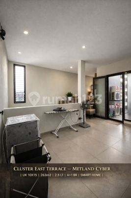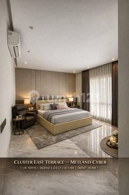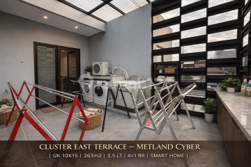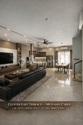 Rumah Smart Home Premium Metland Cyber Puri - Full Furnished 2.5 Lt Hadap Taman & Jogging Track Dijual rumah premium siap huni di kawasan elite Metland Cyber Puri, hunian modern dengan konsep Smart Living & Green Environment yang semakin diminati ekspatriat dan profesional Jakarta Barat. Unit berada di Cluster East Terrace, cluster eksklusif dengan lingkungan tenang, rapi, dan private. Spesifikasi Properti LT 150 m² (10x15) LB ±263 m² | 2,5 Lantai Full Bangunan 4+1 Kamar Tidur | 3+1 Kamar Mandi Hadap Barat Daya Carport 2 Mobil Depan taman | Belakang jogging track (no bangunan) Ventilasi & sirkulasi udara sangat baik Keunggulan Teknologi & Efisiensi Full Smart Home System PLTS 5500 WP + Battery Backup 15 KWh -> Hemat listrik hingga 60%++ / bulan Solar Water Heater 150L PDAM + Sumur Bor Backup Sistem air lengkap + filter Interior & Layout Open space modern concept Living room backdrop premium AICA Kitchen island besar + premium appliances Master bedroom ±55 m² flooring marmer + bathtub Semi furnished, sangat terawat & siap huni Nilai Jual Kawasan Metland Cyber Puri Township modern konsep Smart City Lingkungan hijau & pedestrian friendly Security 24 jam & cluster system Banyak ekspatriat & komunitas profesional Surrounding Area Puri Indah CBD Lippo Mall Puri & Puri Indah Mall RS Pondok Indah Puri Sekolah IPEKA, Notre Dame, Springfield Cafe, lifestyle & commercial area walking distance Aksesibilitas Tol Jakarta-Tangerang Tol JORR W2 Akses cepat ke Puri Indah & Bandara Soetta Dekat CBD Jakarta Barat Unit seperti ini sangat jarang tersedia di Metland Cyber Puri! Survey Sekarang Hubungi: Henry Tja HP: 0878xxxxxxxx Remax Ritz GLC