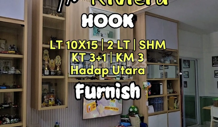 Harga 5.25m nego Rumah hook semi furnish di riviera metland puri 1. Luas Bangunan : 8 x 15 mtr = 120 m2, 2. Luas Tanah : 10 x 15 mtr = 150 m2, 3. Sertifikat = SHM, 4. Listrik = 7700watt, 5. Air = PDAM dan pompa summersible ( Toren+Filter ) bs di switch utk penggunaanny, 6. Kamar Tidur = 3 kamar + 1 kamar PRT, 7. Kamar Mandi = 3 kamar mandi berikut partisi shower screen, dan 1kamar mandi PRT, 8. Interior Semi Furnish ( ruang tamu, dapur, kamar utama, serta kamar lt.2 ), 9. Area Kanopi Laundry dilengkapi dengan Automatic Kanopi, 10. Area Kanopi Karpot Mobil, sudah dilapisi dengan alumunium jd tidak panas, dan kanopi maju, 11. Area Samping Rumah ( 2x15mtr ) : partisi alumunium dan kaca ( dapat digunakan sebagai gudang ). Fee : - 5unit AC ( berikut rak outdoor AC, sudah tersusun rapih ), - 1set ( 2tabung ) Filter Toren Air.
