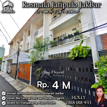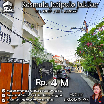 INFO UPDATE LISTING RUMAH MINIMALIS MODERN ROSMALA JATI PULO PALMERAH JAKBAR Alamat: Jl. Rosmala Kel. Jati Pulo Kec. Palmerah JakBar Detail Properti: - Luas Tanah : 96 m² - Luas Bangunan : ± 240 m² Keunggulan Lokasi: Lokasi Strategis dan Nyaman Harga: Rp. 4 Miliar Harga BELUM Termasuk biaya Pengosongan dan Balik Nama. (Harga di atas belum termasuk BPHTB 5%, biaya lelang 2%, Pajak Pemerintah 1%, dan PBB jika ada) **Kenapa Memilih Kami?** Dengan pengalaman 12 tahun di bidang lelang, kami menyediakan solusi satu atap untuk semua transaksi properti Anda. Proses yang jelas dan bersih sehingga Anda bisa tenang hingga serah terima. Hubungi Kami untuk Info Lebih Lanjut: - Holly: 081818xxxx - Ferry: 0816116xxxxLelangProperti #PropertiIndonesia #InvestasiProperti #PropertyInvestment #RumahDijual #AgentProperti #JakartaRealEstate #JualBeliProperti #EraIndonesia #AgenPropertiTerpercaya #Investasi #RealEstateAuction #JakartaBarat #Rumahnyaman #RumahdijualJakartaBarat #Palmerah #Rumahasri #Jatipulo #Rumahminimalis
