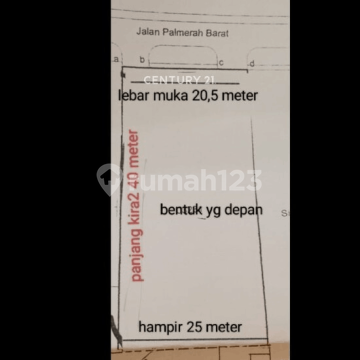DIJUAL TANAH KOMERSIAL STRATEGIS, PALMERAH, JAKARTA SELATAN Lahan komersial langka di kawasan berkembang pesat, sangat ideal untuk bank, showroom mobil, klinik, maupun mini building. Akses mudah, visibilitas tinggi, dan nilai investasi menjanjikan. Lokasi: Kel. Grogol Utara, Kec. Kebayoran Lama, Jakarta Selatan Spesifikasi: Luas Tanah: ± 2.010 m² Hadap Utara Row jalan lebar ± 4 mobil (2 arah) Sertifikat Hak Milik (SHM) Sebagian lahan sedang disewakan (uang sewa akan di-cash back secara proporsional) Keunggulan Lokasi: Dekat bank & showroom BYD Dilalui transportasi umum (angkot & feeder Busway) ± 2,5 km ke Jakarta Design Center ± 1,7 km ke BINUS Anggrek ± 6,4 km ke SCBD Harga: Rp 23 Juta / m² JCM2 262453 Pilihan tepat untuk investasi dan pengembangan usaha di Jakarta Selatan. Hubungi segera untuk detail dan survei lokasi.
