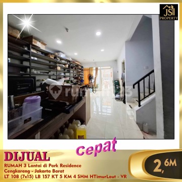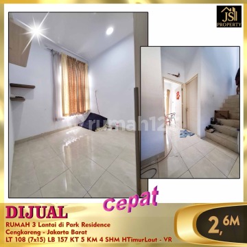 DIJUAL RUMAH 3 Lantai di Park Residence Cengkareng - Jakarta Barat Dekat dengan Pasar Modern laris Dekat dengan sekolah Luas Tanah 108 m² Dimensi 7 x 15 m² Luas Bangunan 157 m² 3 Lantai Kamar Tidur 4 + 1 ART Kamar Mandi 3 + 1 Semi Furnised (kitchen set aja) Listrik 11.000 Watt Air PAM Sertifikat SHM Hadap Timur Laut Harga 2.6 M Nego Hub : Fenny 0821xxxxxxxx