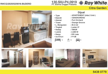 Dijual unit Apartemen Puri Orchard Jakarta Barat Type 1 BR Lantai 37 Furnished Nyaman Siap huni