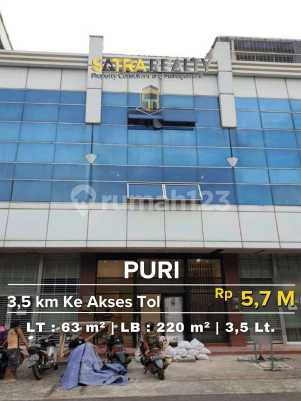 RUKO PURI DEKAT AKSES TOL Kode Listing : RKPN0002 Luas Tanah : 63 m2 Jumlah Lantai : 3,5 Luas Bangunan : 220 m2 Sertifikat : HGB Kamar Mandi : 4 Listrik : 16.500 + Free AC 5 unit + Kamar mandi tiap lantai Harga : 5,7 M (NEGO)