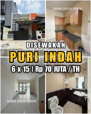 FOR RENT Rumah Puri Indah Dalam Komplek One Gate Security 5 Menit ke Lippo Mall Puri Uk 6x15 tingkat 2 lantai 3+1 KT 2 KM carport 1 mbl sewa per tahun 70jt